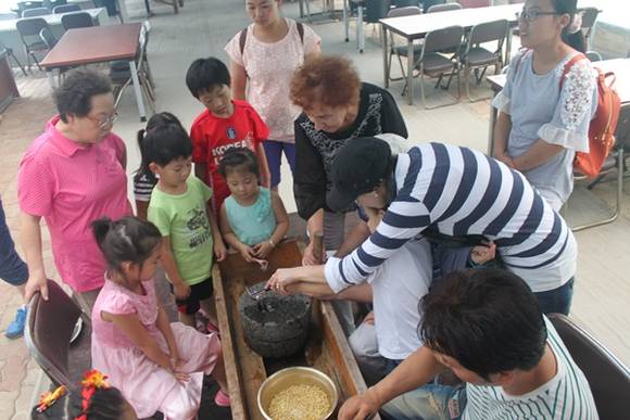▲다문화가정 어린이들이 콩요리를 만들며 즐거운 시간을 보내고 있다.(사진=경기관광공사 제공)
