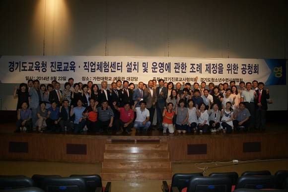 경기도의회 교육위원회 김동규 의원(새누리당,파주3)은 23일 가천대학교 예음관 대강당에서 300여명의 경기도 진로교사, 교육청 관계자, 학부모들이 참석한 가운데 「경기도교육청 진로직업체험지원센터 설치 및 운영 조례」 제정과 관련한 공청회를 개최하였다.