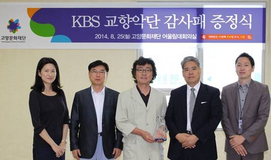 (재)고양문화재단(이사장 최성 고양시장, 대표이사 안태경)은 클래식 음악보급에 크게 기여한 공로로 (재)KBS교향악단(사장 박인건)으로부터 25일 감사패를 받았다.