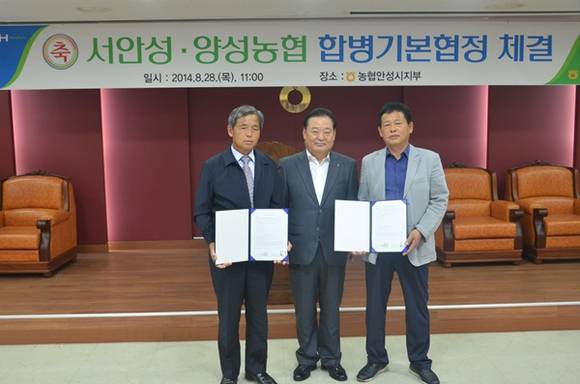 농협중앙회 경기지역본부(본부장 조재록)은 28일 서안성농협(조합장 이호웅)과 양성농협(조합장 오상환)간에 합병기본협정을 체결했다고 밝혔다.