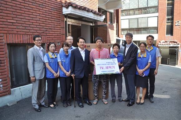 이번 물품전달식은 추석을 맞이하여 관내 저소득 이웃들에게 도움이 되고자 마련된 것으로 지난달 화재로 아내를 잃고 삶의 터전마저 전소되는 사고를 당한 가정에 생활필수품인 가전제품(TV, 세탁기)을 전달하기로 하였다.