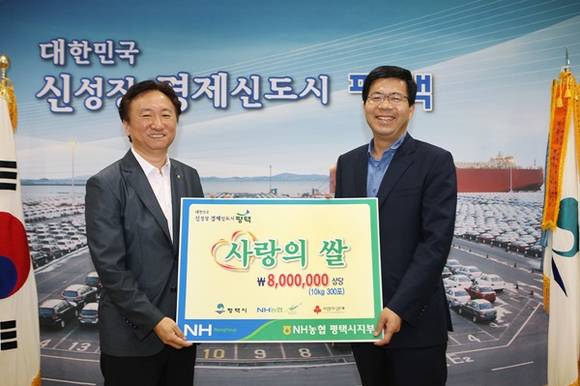 농협중앙회 평택시지부(지부장 권준학)는 지난 28일 평택시청을 방문해 곧 다가올 민속 최대 명절인 추석을 앞두고 도움이 필요한 어려운 이웃에게 전달해 달라며 사랑의 쌀(10㎏ 300포, 800만원 상당)을 기탁했다.