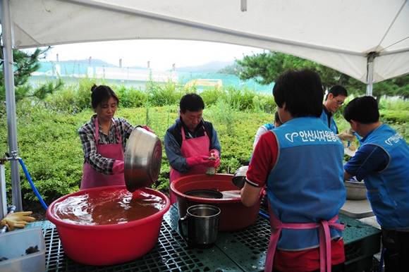 제종길 안산시장은 부인 임미정 여사와 함께 29일부터 여름휴가를 반납하고 진도를 찿아 봉사활동을 하고 있다.