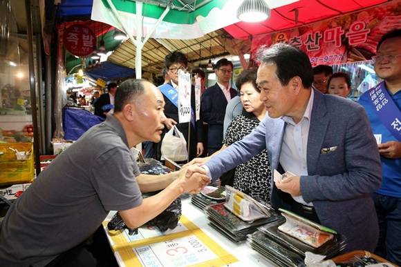 ▲이필운 안양시장은 시장 상인들과 전통시장 활성화를 위한 심도있는 대화와 다가가는 현장중심 행정으로 상인들에게 큰 인기를 얻고 있다. (사진=안양시 제공)