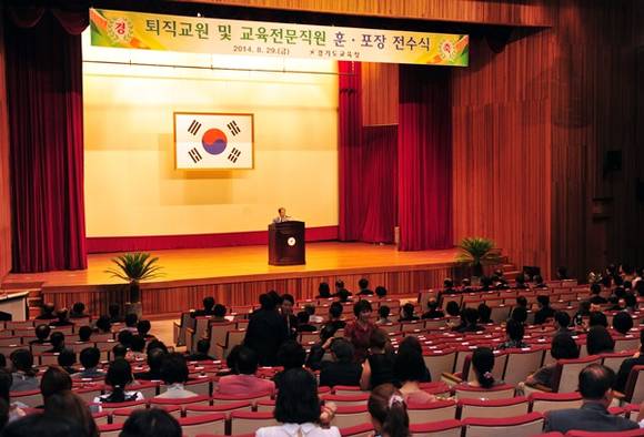 경기도교육청(교육감 이재정)은 29일 도교육청 대강당에서 2014년 8월말 퇴직교원 550명에게 훈.포장을 전수 했다.