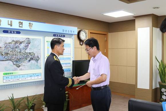 소방재난본부(본부장 이양형)는 지난 29일 오후 안산소방서에서 세월호 사고로 희생된 故 이호진(단원고 2학년)학생의 부친 이용기(안산소방서 의용소방대)씨에게 도내 소방공무원들이 자발적으로 모금한 성금 2400만원 상당을 전달했다고 밝혔다.