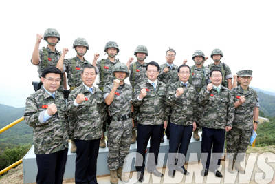 ▲정의화 국회의장이 2일 추석을 앞두고 백령도를 방문, 해상경계 태세를 점검하고 명절 연휴에도 귀향하지 못하고 경계근무를 서게 될 국군장병들을 위로했다.(사진=국회)