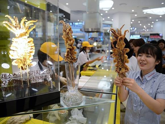 롯데백화점 광복점 지하 1층 식품관 델리코너에 15가지 특제 소스로 생오징어를 통채로 튀겨 판매하는 ‘오짱’이 최근 오픈해 고객들이 줄을 서서 기다릴 만큼 큰 인기를 얻고 있다.