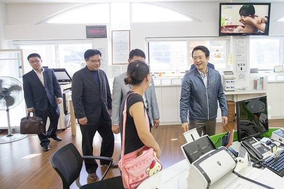 6일 남경필 경기도지사가 경기도청 언제나민원실 방문해 추석 명절 연휴 근무자들을 격려 하고 방문한 민원인들에게 인사를 하고 있다.
