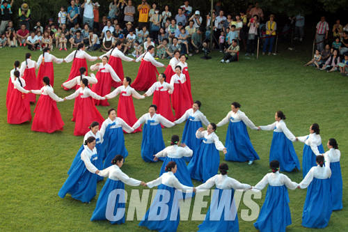 추석 당일인 9월 8일 오후 서울 삼청로 국립민속박물관(관장 천진기) 잔디마당에서 '해남 우수영 강강술래(국가지정무형문화재 제8호)' 공연이 펼쳐졌다.