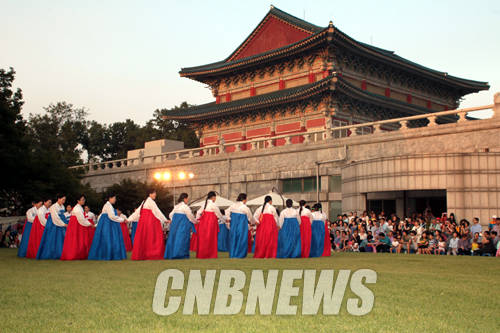 추석 당일인 9월 8일 오후 서울 삼청로 국립민속박물관(관장 천진기) 잔디마당에서 '해남 우수영 강강술래(국가지정무형문화재 제8호)' 공연이 펼쳐졌다.
