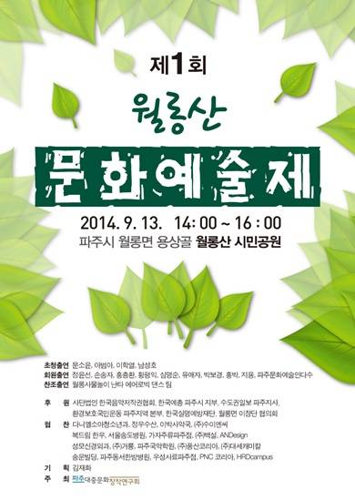 이날 예술제 공연은 파주대중문화장작연구회(회장 정태권)가 주최하고 사단법인 한국음악저작권협회, 한국예총파주시지부, 수도권일보파주지사, 환경보호국민원동파주지역본부, 한국실명예방재단, 월롱면이장단협의회가 공동 후원으로 마련됐다.
