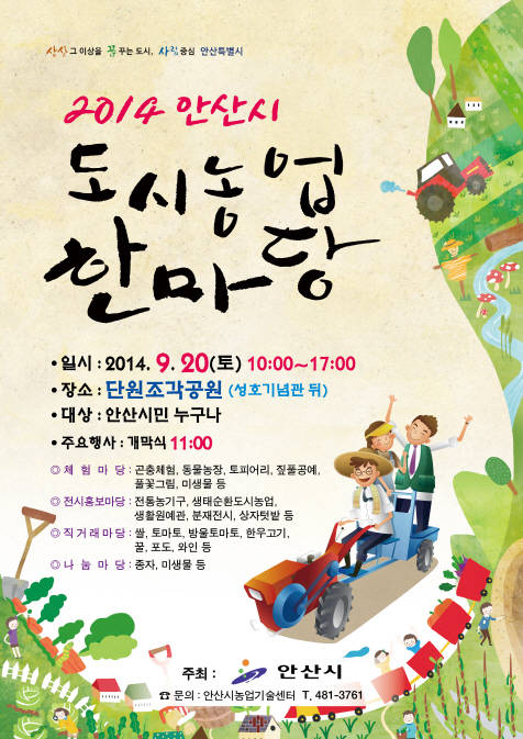 안산시(시장 제종길)는 9월 20일 성호기념관 뒤 단원조각공원에서 “2014안산시도시농업한마당” 행사를 개최한다.