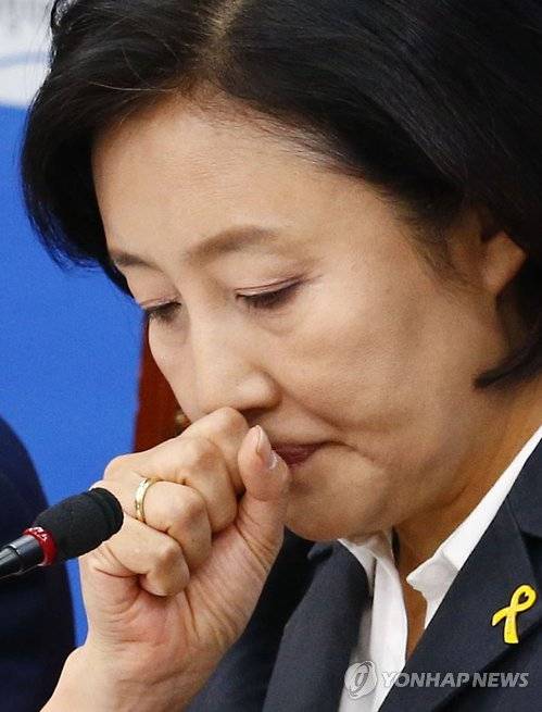 ▲박영선 위원장이 국회에서 열린 원내대책회의에서 고심에 잠겨 있다.(사진=연합뉴스)