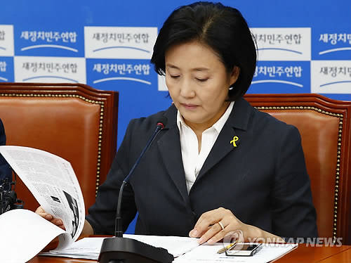 ▲새정치민주연합 박영선 국민공감혁신위원장 겸 원내대표가 12일 국회에서 열린 원내대책회의에서 정치 관련 언론사 보도를 살펴보고 있다. (사진=연합뉴스)