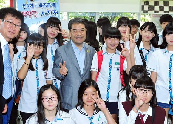 이재정 경기도교육감이 13일 오전 수원시 소재 경기평생교육학습관에서 열린 '제4회 교육공동체 백일장, 사진전'에서 참가학생을 격려 했다.