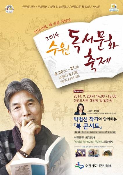 ‘2014 수원독서문화축제’에 대한 자세한 사항은 수원시 도서관사업소 홈페이지(
