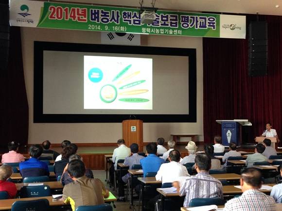 평택시(시장 공재광)는 지난 16일 농업기술센터 대강당에서 평택시쌀연구회원, 벼농사 전업농, 시범사업 추진 농업인 등 80여명이 참여한 가운데 2014년도 벼농사 핵심기술보급 평가회를 개최했다.