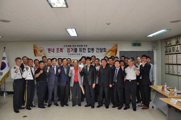 수원중부경찰서(총경 고기철)는 지난 19일 지역 시장상인, 주민 등을 상대로 상습적인 폭행, 업무방해, 금품 갈취를 일삼는 ‘동네조폭’근절을 위해 지역주민과의 간담회를 실시하였다.