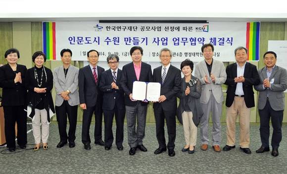수원시는 지난 19일 경기대학교 행정대학원 세미나실에서 수원시(시장 염태영)와 경기대학교(총장 김기언)가 인문도시 수원을 만들기 위한 업무협약을 체결했다.