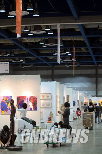 ▲24일 오후 서울 삼성동 코엑스(COEX) 전시장에서 제13회 2014 한국국제아트페어(KIAF/14) VIP 프리뷰 행사가 열렸다. 이날 전시 개막을 위해 화랑 관계자들이 막바지 준비를 하고 있다.(사진=왕진오 기자)