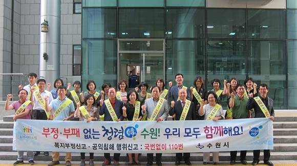이번 캠페인은 시민들의 왕래가 많은 인계동 중심상가와 수원시청역 주변에서 시민들을 대상으로 수원시의 반부패.청렴의지를 표명하고 정부 복지부정신고센터 운영, 공익신고 보호제도 등을 홍보했다.