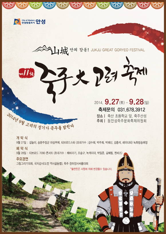 안성시 동안성죽주문화축제위원회는 오는 27일부터 28일까지 2일간 죽산초등학교 앞 일원에서 ‘제11회 죽주대고려축제’를 개최한다고 밝혔다.