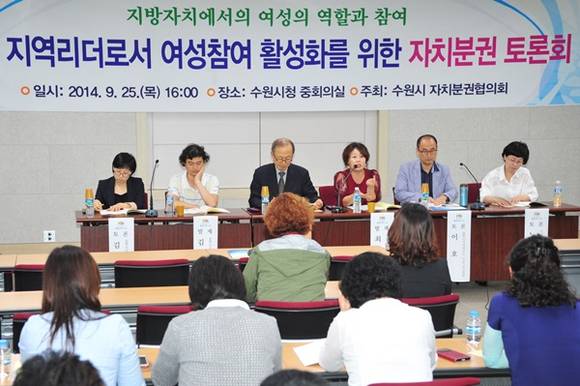 수원시가 25일 ‘지방자치에서의 여성의 역할과 참여’라는 주제로 지역 리더로서 여성참여를 활성화하기 위한 자치분권 토론회를 수원시청 중회의실에서 개최했다.