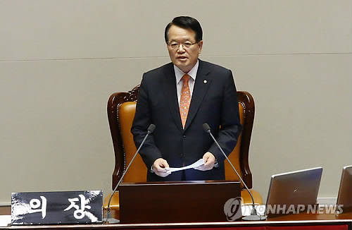 정의화 국회의장은 26일 새정치민주연합을 포함한 야당이 불참한 채 여당인 새누리당 의원들만 참석한 가운데 본회의를 열었으나 당초 공언됐던 민생법안을 비롯한 90개의 안건 처리를 하지 않고 불과 10여분 만에 산회했다.