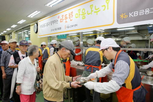 행사에는 KB금융 직원 봉사자 90여명이 참여해 노인 4600명에게 점심 급식 봉사활동을 진행했고 서울노인복지센터에 마련된 별도 공간에서 장수사진 촬영도 병행됐다.