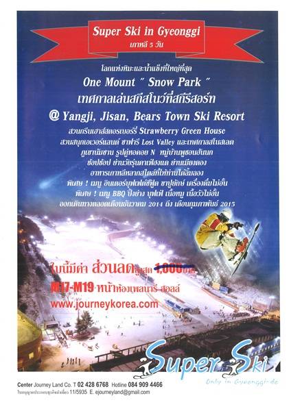 경기도(지사 남경필)와 경기관광공사(사장 황준기)는 겨울을 경험하지 못하는 태국,싱가포르,필리핀 관광객들을 대상으로 도내 스키장과 다양한 관광지들을 연계한 '경기도 슈퍼 스키(Super Ski)‘ 상품을 개발했다고 밝혔다.