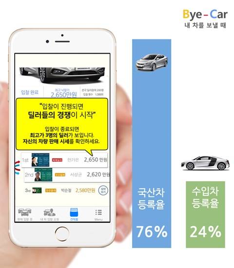 ▲바이카, "어플(APP) 등록 차량 중 24%가 수입차" 통계