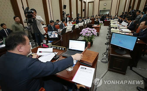 ▲서울 서초구 서초동 서울고등법원에서 열린 국회 법제사법위원회의 서울고법과 산하 법원에 대한 국정감사에서 이상민 법사위원장이 의사봉을 두드리고 있다.(사진=연합뉴스)