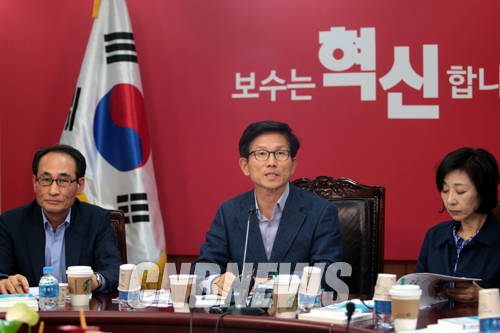 ▲9일 오후 새누리당 당사에서 보수혁신위원회가 열렸다. 이날 김문수 위원장이 위원회의 두 번째 혁신 과제인 국회의원 출판기념회 개선 방안에 대해 모두 발언을 하고 있다.(사진=왕진오 기자)