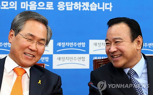 새누리당 이완구 원내대표와 새정치민주연합의 새 원내사령탑으로 선출된 우윤근 신임 원내대표가 10일 처음으로 회동했다.