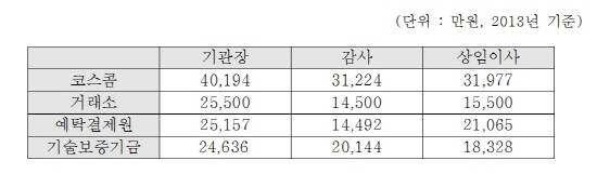 임원진 연봉을 따져보면 사장이 4억원, 감사가 3억1000만원, 상임이사가 3억2000만원으로, 공공금융기관들 중 최고수준을 나타냈다.