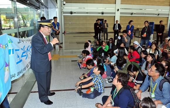 행사에는 서울.경기 지역 초등학생 동반 가족 80명, 소외계층 어린이 20명 등 총100여명이 참가했다. 이날 이교육감은 경의선 열차에 올라 조종실을 살펴보는 등 행사에 참가한 학생. 학부모들과 기차여행 평화체험 활동을 함께 했다.