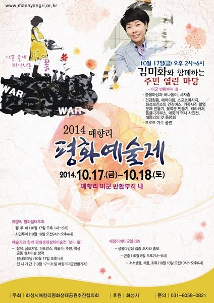 ‘2014 매향리 평화예술제’참가비는 무료이며 접수문의는 화성시매향리평화생태공원추진협의회(031-8058-0821)와 인터넷(