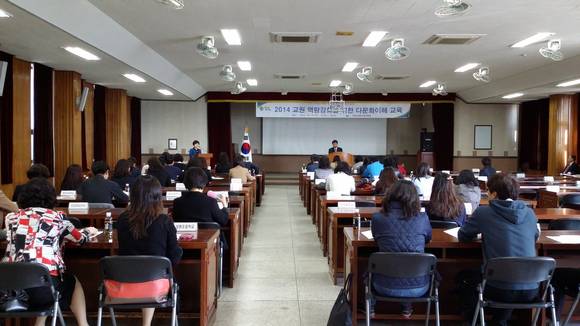 춘천교육지원청(교육장 이민찬)은 지난 15일 오후 1시 춘천교육지원청 대회의실에서 관내 초·중·고등학교 교원들을 대상으로 하는 '2014 교원역량 강화를 위한 다문화 이해 교육'을 실시했다.