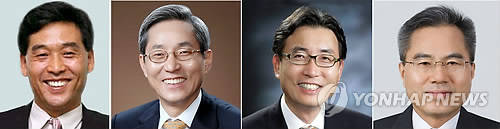 ▲사진 왼쪽부터 김기홍 전 국민은행 수석부행장, 윤종규 전 KB금융 부사장, 지동현 전 국민카드 부사장, 하영구 한국씨티은행장(사진자료=연합뉴스)