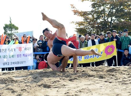 ▲파주개성인삼축제에서는 씨름대회 등 시민들이 참여할 수 있는 볼거리와 먹거리가 풍부했다.