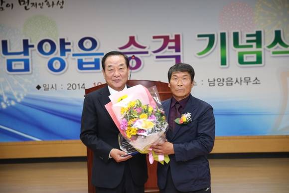 새누리당 서청원(경기 화성갑) 의원은 20일 개최된 남양읍 승격 기념 현판식에 참석해 ‘남양동’을 ‘남양읍’으로 전환하는데 크게 기여한 공로로 남양읍 이장협의회로부터 감사패를 수상했다.