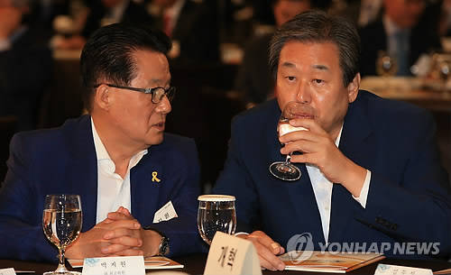▲새정치연합 박지원 의원이 연일 새누리당 김무성 대표(오른쪽) 추켜세우기에 나서고 있어 눈길을 모으고 있다.(자료사진=연합뉴스)