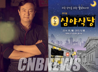 일본 만화 '심야식당'을 원작으로 하는 창작 뮤지컬 '심야식당'은 2012년 초연 이후 2년 만에 대학로 뮤지컬센터 중극장에서 재연된다고 밝혔다.