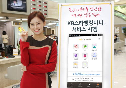 ‘KB스타뱅킹미니’는 조회·이체·스마트폰 전용상품 등 고객들이 주로 사용하는 메뉴를 중심으로 구성, 단순한 화면을 통해 홈 화면에서 모든 거래가 가능하도록 해 이용 편의성을 높였다.