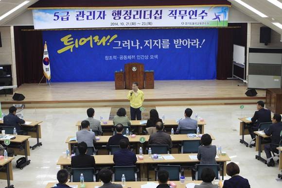 ‘행복한 경기교육을 위한 5급 관리자 행정리더십 직무연수’는 도내 5급 사무관 80여명을 대상으로 10월 21일부터 23일까지 3일간 연수원에서 진행된다.