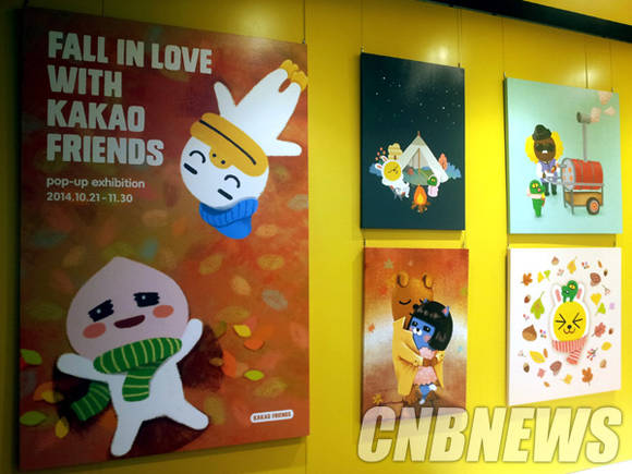21일 오픈한 브랜드스토어는 카카오프렌즈 관련 상품 뿐 아니라 카카오프렌즈 캐릭터들을 그린 그림을 벽에 전시하고 있어 눈길을 끈다.