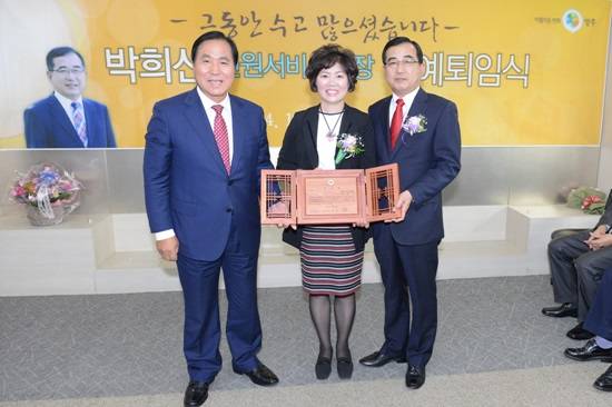 현삼식 양주시장은 “40년 동안 공직에 몸 담아 양주시 발전에 지대한 공헌을 하신 박희선 국장님의 노고에 감사드리며, 퇴임 후에도 더 큰 관심과 사랑으로 시정발전을 위해 변함없이 노력해주길 바란다”고 말했다.