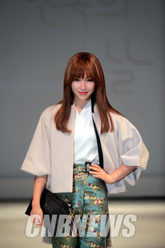 ▲25일 오후 서울 문화역서울 284에서 열린 '2014 한복의 날' 행사에 참석한 배우 이유리가 한복 홍보대사로 위촉된 후 개량한복을 입고 포즈를 취하고 있다.(사진=왕진오 기자)