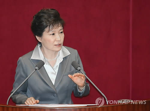 반면 대다수의 야당 의원들은 지난해처럼 박 대통령 입장과 퇴장 때 기립만 하고 박수를 함께 치지는 않았지만 박 대통령의 연설 내내 새정치민주연합의 문희상 비상대책위원장과 문재인·박지원 의원 등은 미리 제공된 연설문을 정독하며 박 대통령의 연설에 집중하는 모습을 보였다.